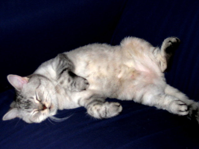 被鬧到走來走去的ㄚ頭 拍下爽泡泡的睡姿~ 真是爽貓 (應~AMY 要求唷 ) 平常裝賢淑的泡泡 也有睡到兩腳開開的樣子