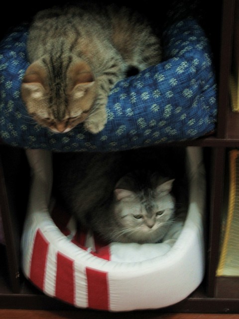 結果~貓床~ 被女王本人我給搬出來~ 呈現兩隻貓住樓上樓下的局面
