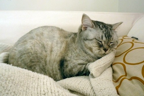 第三張 越睡越開心~ 整隻貓躺下了 還不忘來個小翻身 只差沒仰睡